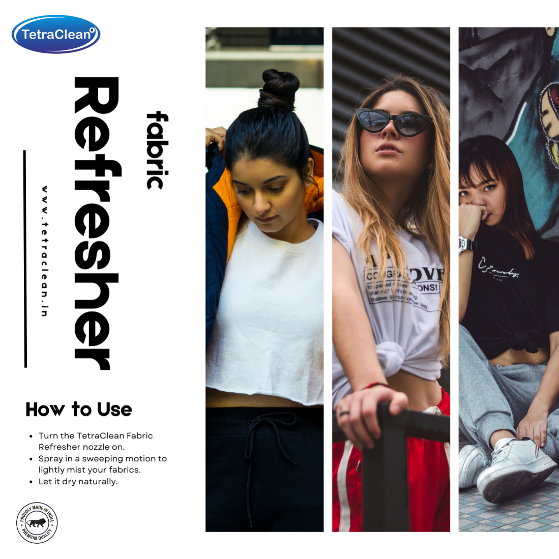 Quickly eliminate odors and disinfect fabrics with TetraClean Fabric Refresher. Enjoy instant freshness and a pleasant scent—perfect for clothes, upholstery, carpets, curtains, and more