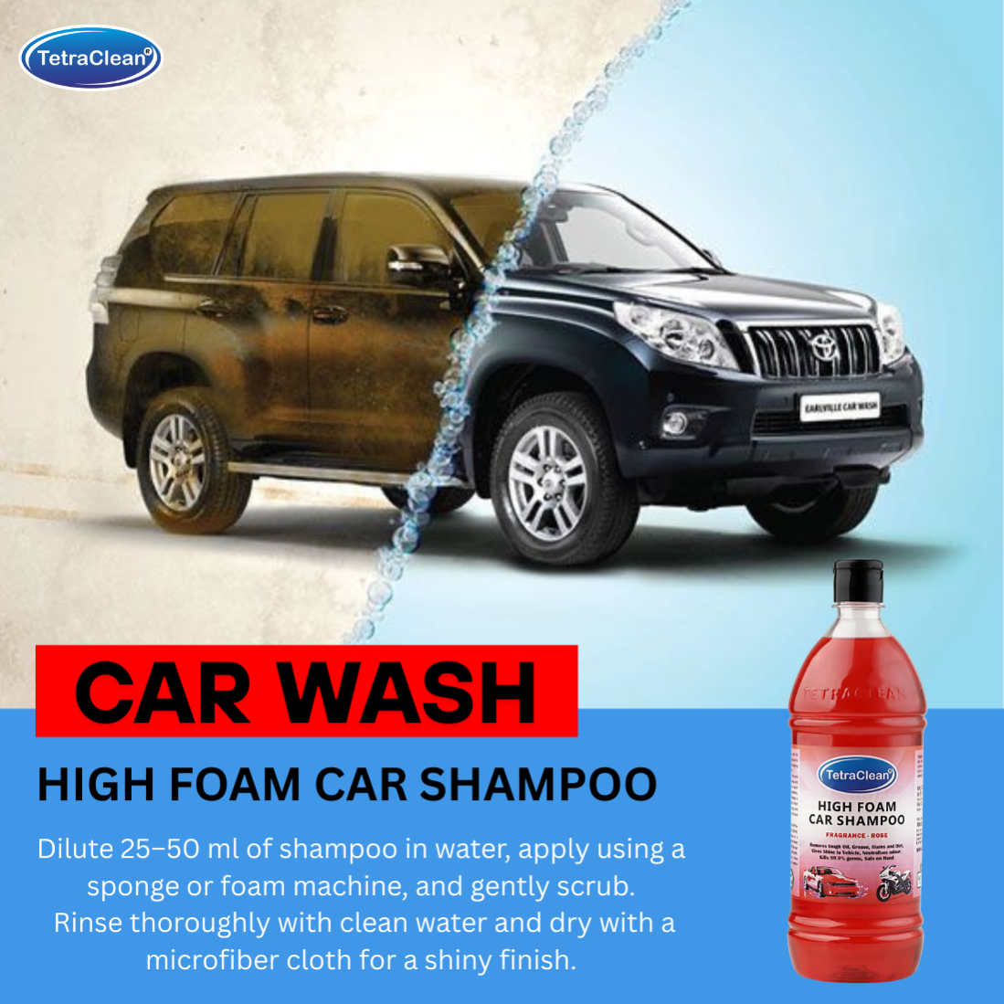 TetraClean® High Foam Car Shampoo is a powerful, highly concentrated car wash formula that removes tough oil, grease, dirt, stains, and road grime. It produces rich foam, cleans in both soft and hard water, and leaves vehicles shiny, smooth, and fresh. Suitable for manual washing and foam machine washing