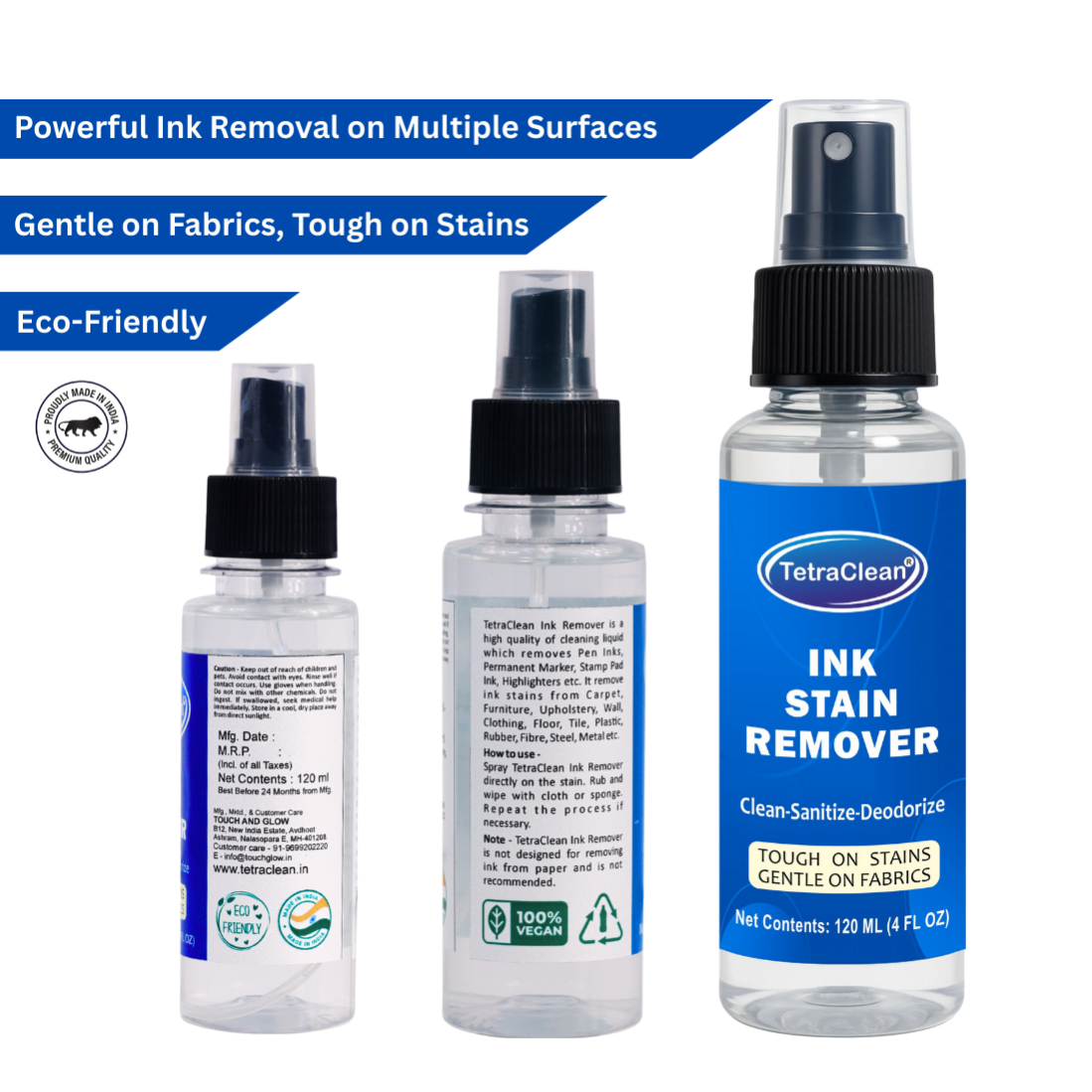 TetraClean Ink Stain Remover Spray – Multi-Surface, Fabric-Safe Ink & Marker Stain Cleaner (Available in 120ml & 500ml & 5L)
