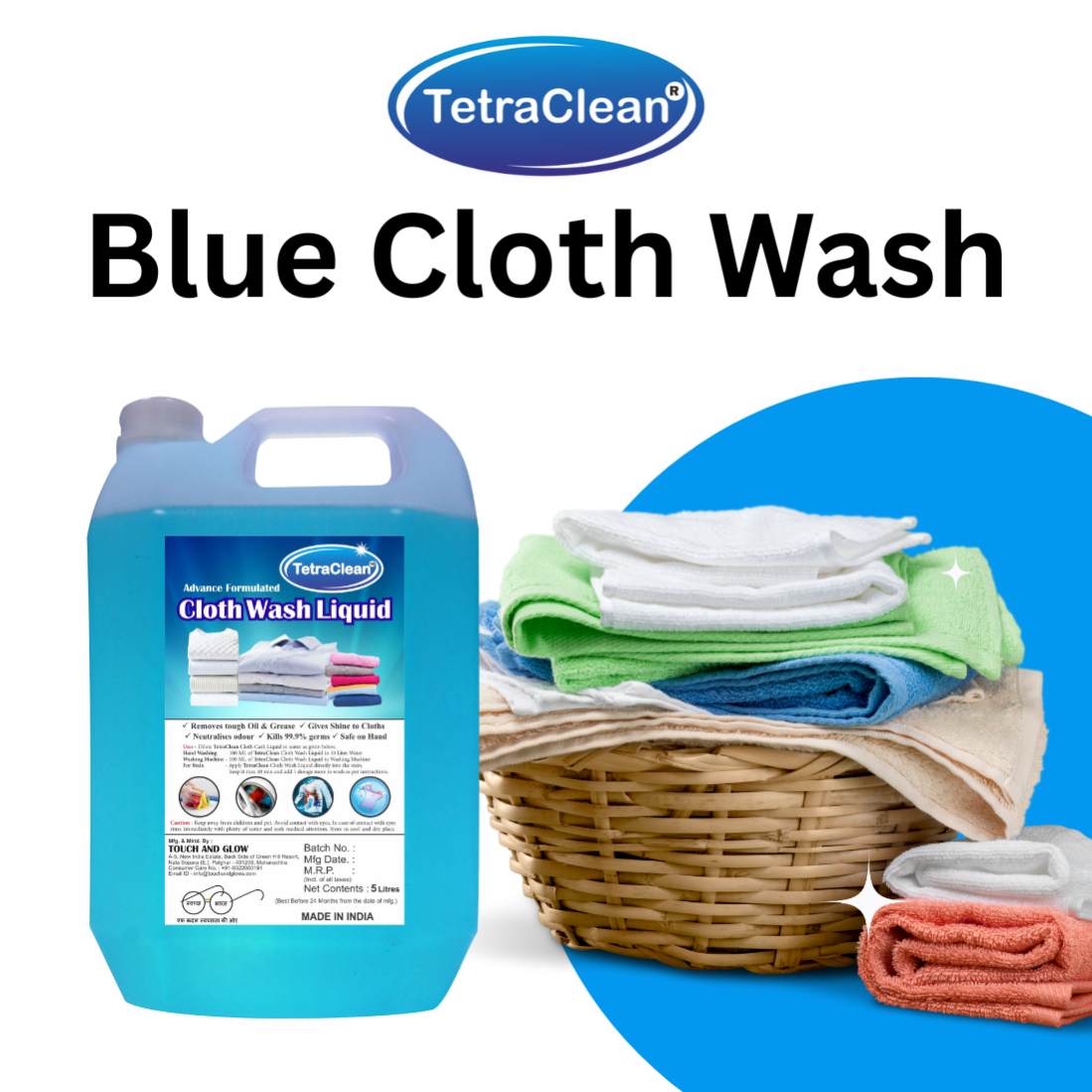 TetraClean Premium Blue Liquid Cloth Wash – Advance Grease & Odor Removal, Germ Protection, Shine Booster, 5 Liter