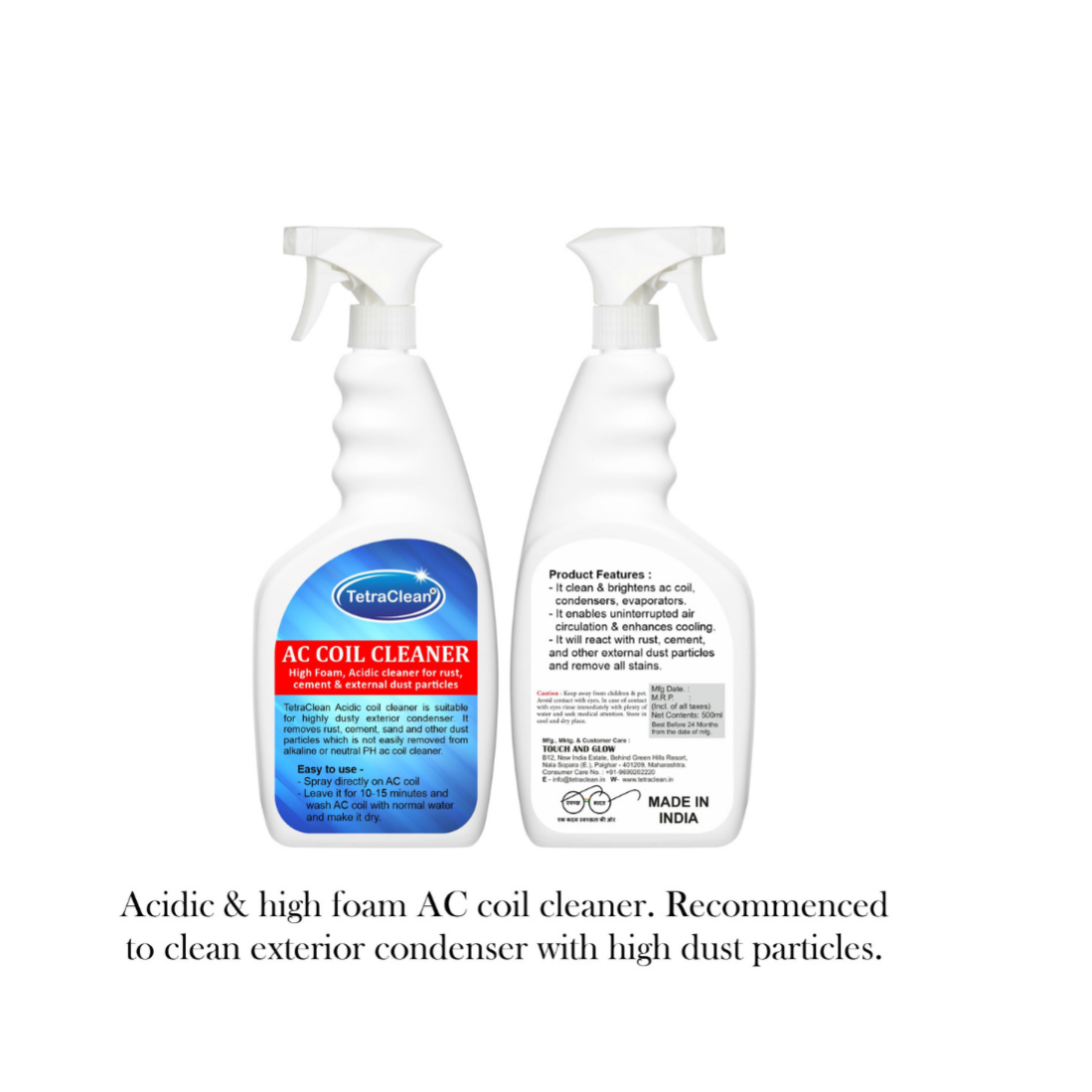 TetraClean Acidic & High Foam AC Coil Cleaner | Removes Rust, Cement, and Heavy Dust | Ideal for Exterior Condensers 500ml Red