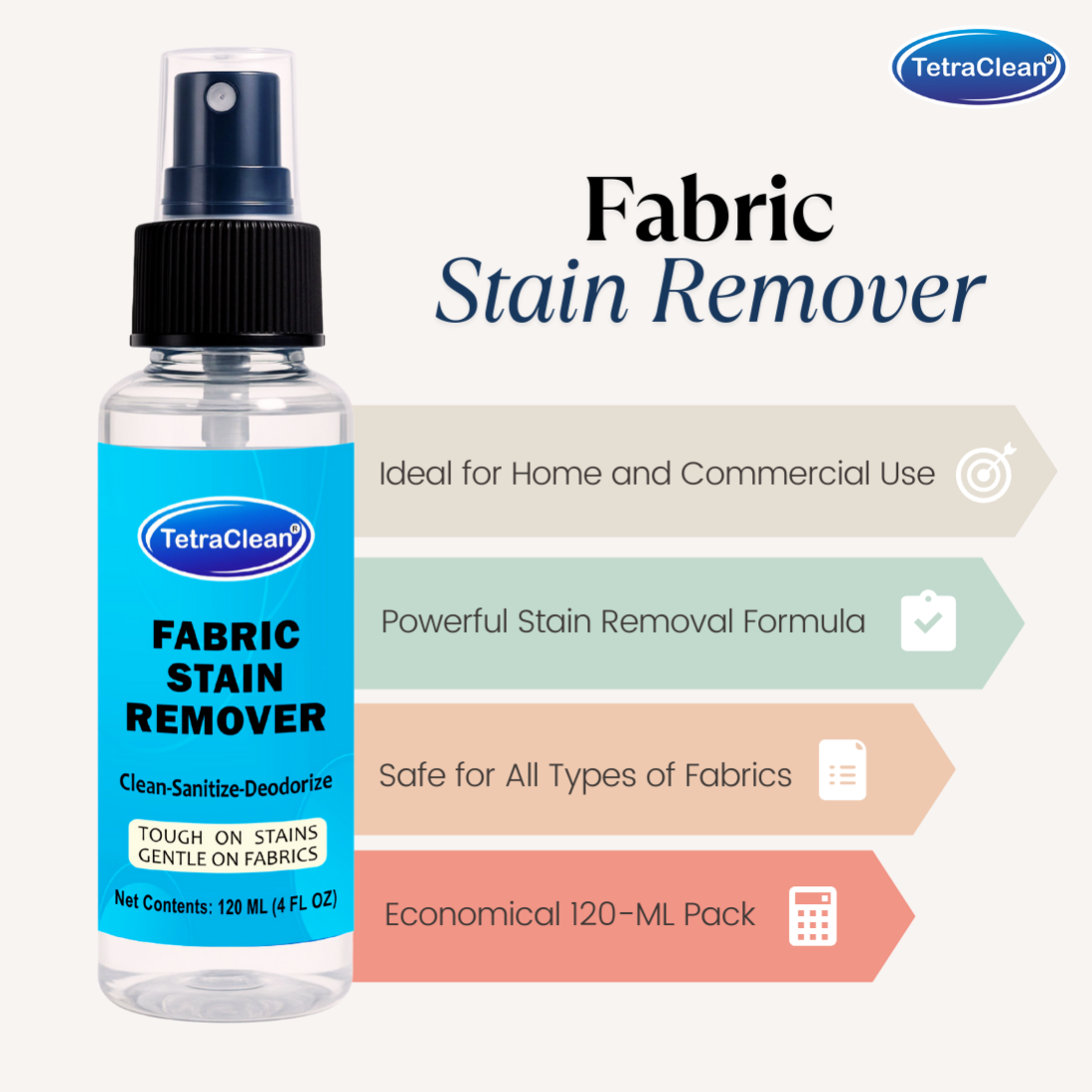 This powerful yet gentle solution is safe for daily use on cotton, wool, silk, polyester, and blends. Unlike harsh chemical cleaners, TetraClean Fabric Stain Remover is eco-friendly, non-toxic, and biodegradable, making it safe for both fabrics and the environment.