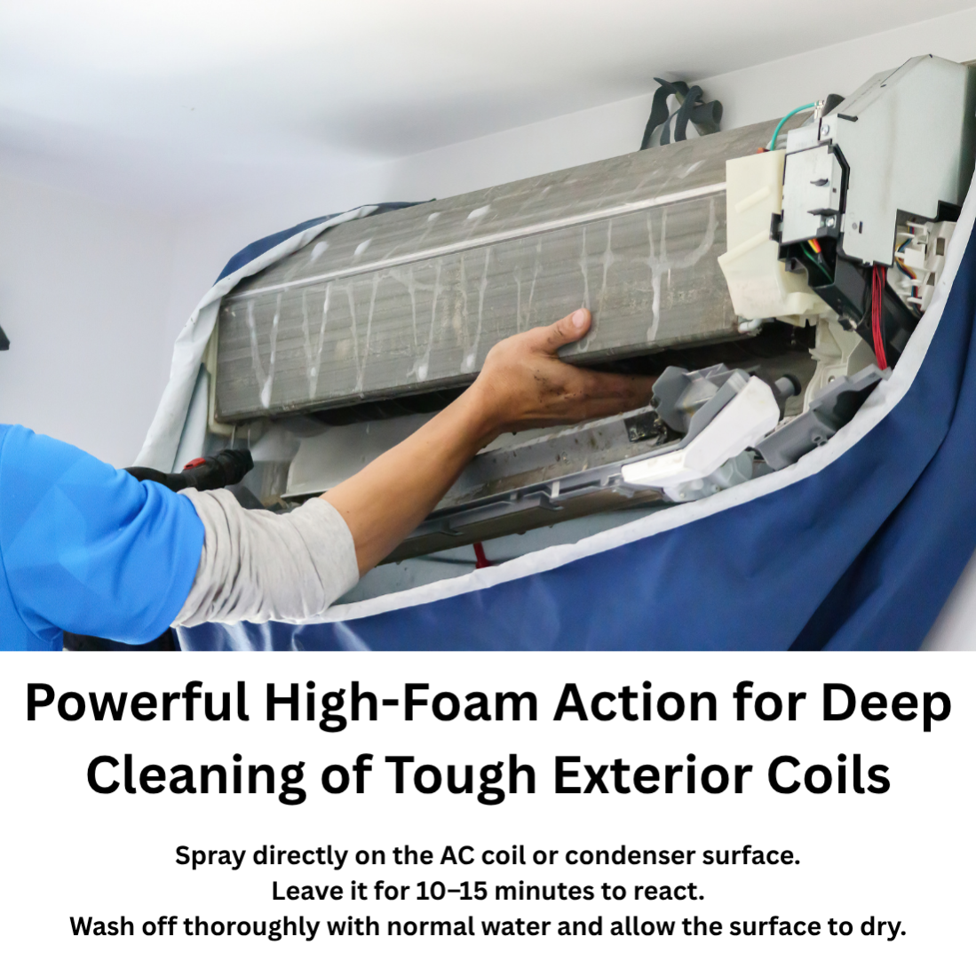 TetraClean Acidic & High Foam AC Coil Cleaner is a professional-grade formula designed to deep-clean exterior condensers and coils covered with rust, cement, and tough dust deposits. Its high-foaming acidic action penetrates deeply, reacting with metal oxides and dust buildup for effective removal without damaging the coils.