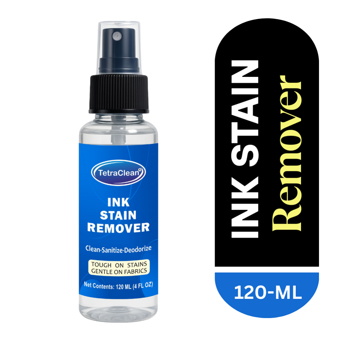 TetraClean Ink Stain Remover Spray – Multi-Surface, Fabric-Safe Ink & Marker Stain Cleaner (Available in 120ml & 500ml & 5L)