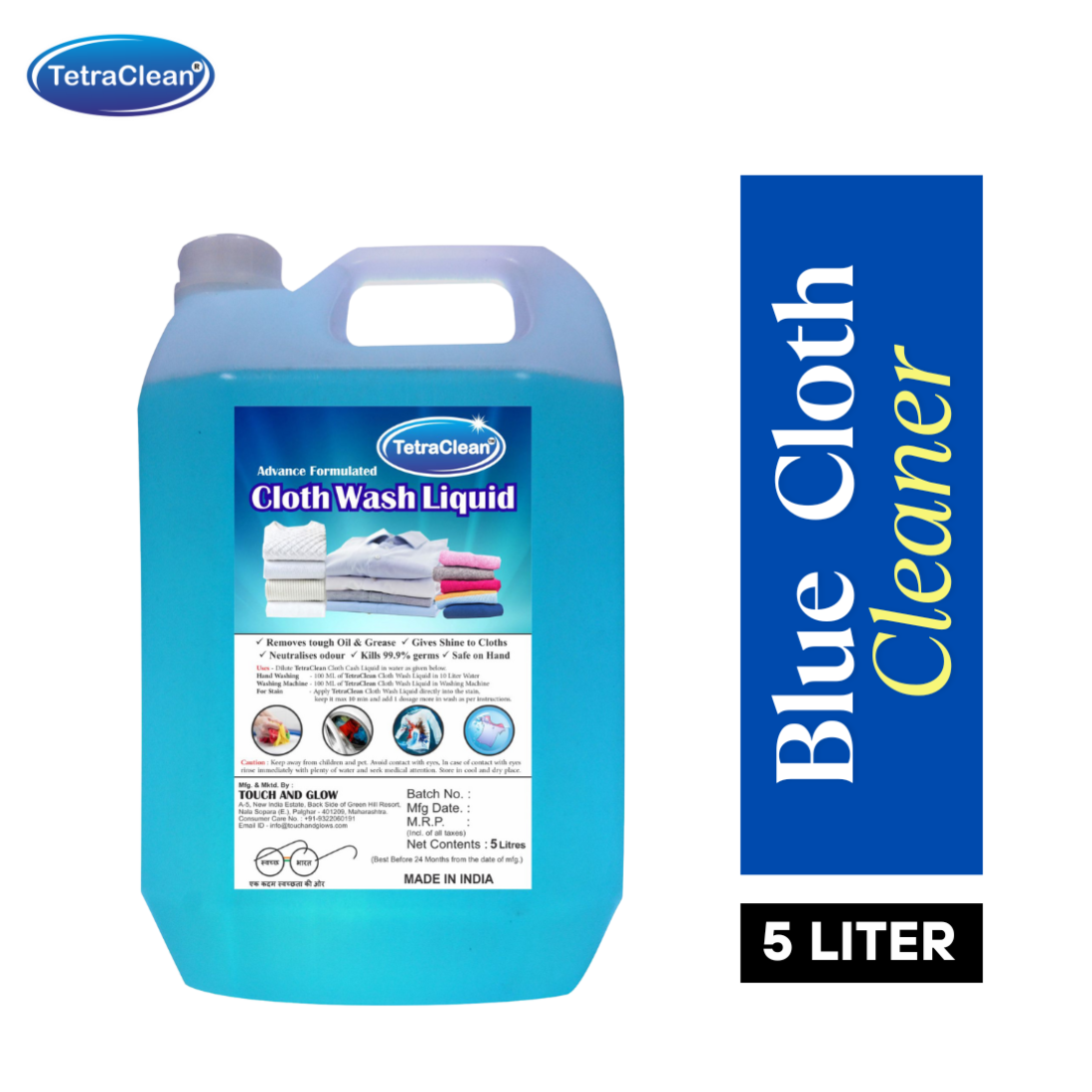 TetraClean Premium Blue Liquid Cloth Wash – Advance Grease & Odor Removal, Germ Protection, Shine Booster, 5 Liter