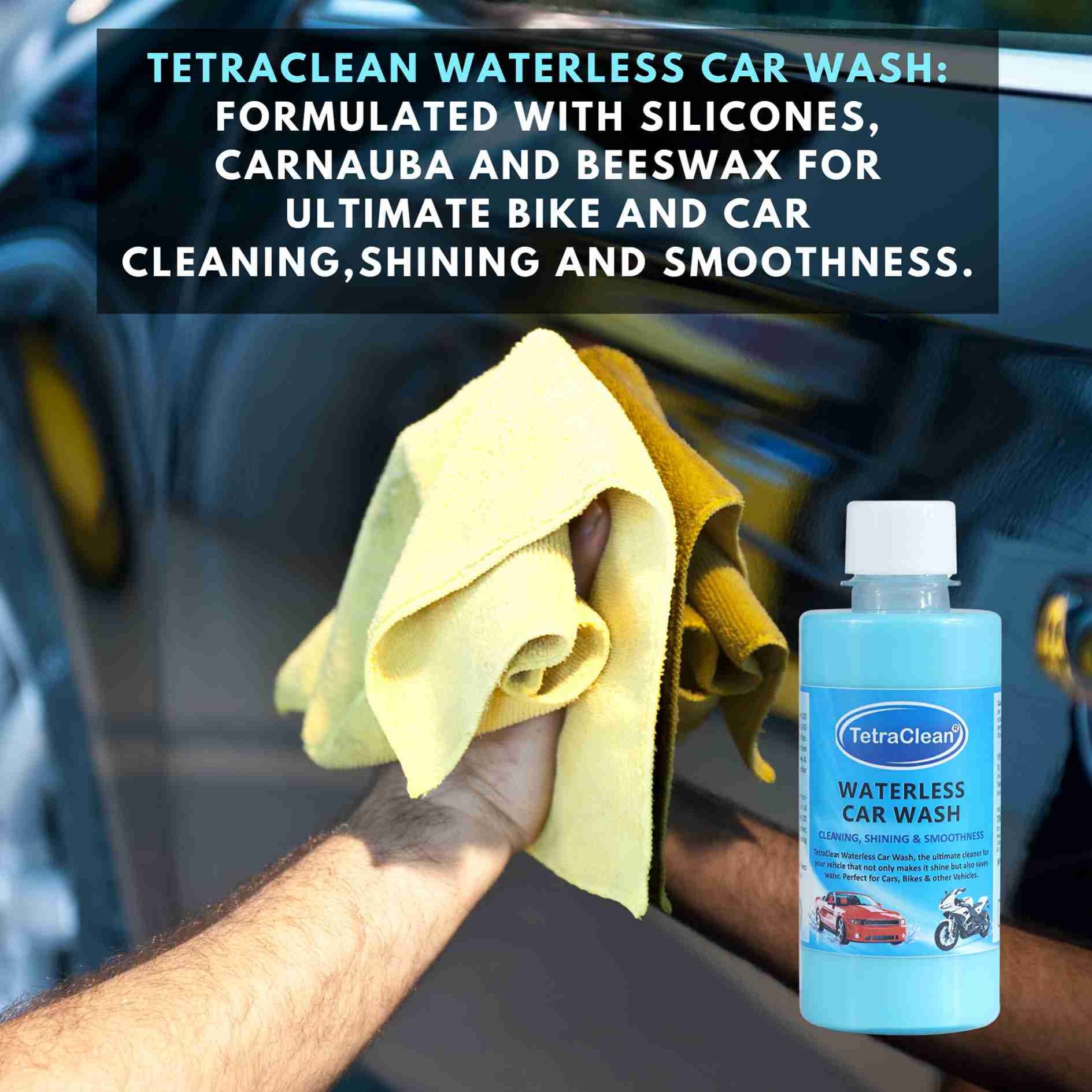 Clean, shine, and protect your vehicle anytime, anywhere with TetraClean Waterless Car Wash. Just spray, wipe, and enjoy a smooth, glossy finish without using a single drop of water.